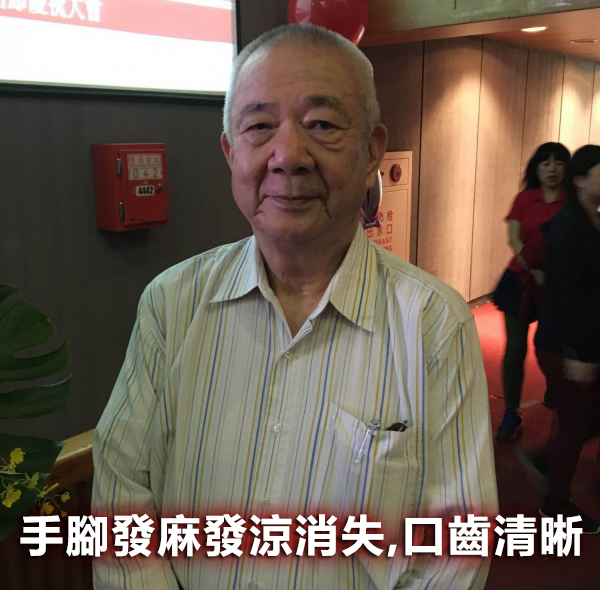 桃園劉阿公患有多年阿茲海默症,家人好幾次丟失找不到人,食用丹參粉8個月後,恢復健康機能,口齒伶俐,手腳也暖和,臉色紅潤有氣色!